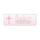 Lovely religious return address labels with pink cross and faux diamond in middle. Grey (grey) letters, background colour is white and pink ombre . Perfect for girl's baptism.