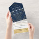 Bar Mitzvah or Bat Mitzvah All-in-One Invitation. Elegant Navy Blue Art Deco.
