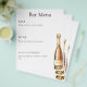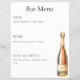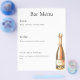 With the text: Open bar. Personalise and add your bar menu. Sage green background. Decorated with a bottle of sparkling wine