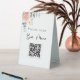 A chic white background. Decorated with a rose gold, blush pink floral, flower (rose)and green watercolored eucalyptus leaves, sprigs, greenery and a faux gold sprig. Personalise and add your own QR code to your website with the bar menu