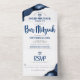 Bar Mitzvah Bold Modern Navy Blue Agate Script All In One Invitation