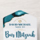 Be proud, rejoice and showcase this milestone of your favourite Bar Mitzvah! Send out this cool, unique, modern, custom all-in-one invitation for an event to remember. Dark teal blue script typography and faux gold Star of David overlay simple, clean white background with turquoise blue agate accented with faux gold veins. This all-in-one product is an unique combination of a custom invitation with an easy to tear off perforated RSVP postcard. Personalise the custom text with your Bar Mitzvah’s name, Hebrew name, date, and venue information. Guaranteed to add stylish fun to his special occasion!