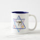 A teen's artwork decorates this colourful bar mitzvah keepsake mug. Just replace our sample name and date for your own for a perfect memento or party favour.