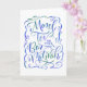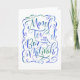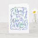 A mazel tov card for a bar mitzvah, hand-lettered in watercolor in blues and greens.