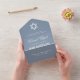 A simple but unusual dusty blue bar mitzvah invitation with detachable RSVP and a very modern colour.