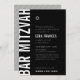 BAR MITZVAH modern minimal bold boy black white Invitation