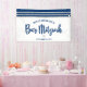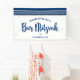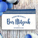 Be proud, rejoice and showcase this milestone of your favourite Bar Mitzvah! Hang up this cool, unique, modern, personalised banner to add to his special day. Bold, navy blue script typography, a silver Star of David and a navy blue and silver glitter striped tallit inspired graphic overlay a simple, white background. Personalise the custom text with your Bar Mitzvah’s name and date or custom message. Guaranteed to preserve cherished memories of his special occasion! Matching and coordinating invites, address labels, stickers, keepsake binders, and other Bar Mitzvah goodies are also available in this trendy and special collection.