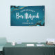 Be proud, rejoice and showcase this milestone of your favourite Bar Mitzvah! Hang up this cool, unique, modern, personalised banner to add to his special day. White calligraphy script, bold white sans serif typography, and a faux gold Star of David overlay a deep turquoise teal blue ombre background with turquoise blue agate accented with faux gold veins. Personalise the custom text with your Bar Mitzvah’s name and date or custom message. Guaranteed to preserve cherished memories of his special occasion! Matching and coordinating invites, address labels, stickers, keepsake binders, and other Bar Mitzvah goodies are also available in this trendy and special collection.