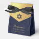 A luxury navy and gold bar mitzvah favor box. The flap is faux gold foil and it has a navy blue star of David on it.