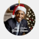 Barack Obama in Santa Hat Christmas Ceramic Ornament