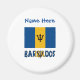 Round magnet has the Barbadian Flag. Below is the word, BARBADOS, also in the colours of the flag. Above is a place, in blue letters, for a name, to add a customised look. Or, create a personalised gift by adding some else's name. Cool for a Bajan family reunion, club or travel group.