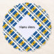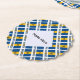 Tiled, on the diagonal, this design on paper coaster features the Barbadian or Bajan flag, and the word, BARBADOS, below. A space of white, fractal, squiggly squares holds a spot for your name, so you can create a personalized item or creative, customized party item.