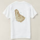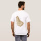 An editable title and slogan accompanies the black trident over blue and yellow bands of the Barbadian flag on the front of this t-shirt. The back displays a detailed map of Barbados.