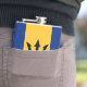 Vinyl Wrapped Flask design with Barbadian (Bajan), blue and yellow pattern with black trident