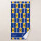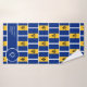 Modern personalised BARBADOS FLAG Bath Towel Set, with customisable Bible verse and MONOGRAM. The design shows the FLAG OF BARBADOS in a tiled horizontal pattern, with matching blue strap at the bottom of the hand and bath towels. The inspirational quote currently reads GREAT IS YOUR FAITHFULNESS, O LORD, which you can personalise with text up to three lines. Other Barbados flag designs can be found in the BARBADOS COLLECTION by Berean Designs.