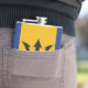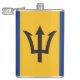 The yellow ór gold and blue flag of Barbados on a large flask fills the entire printable space here. Great gift for your favourite Bajan. Fun for travelers, too.