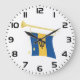 Add a touch of island pride and unique charm to your space with this eye-catching clock design! Featuring a bold graphic of the Barbados flag gracefully hanging from a golden bugle, this clock is a true celebration of Barbadian culture and heritage. The vibrant blue and yellow colours of the flag, along with the iconic trident, are proudly displayed, creating a striking visual that will stand out in any room.