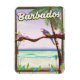Barbados Parrot Landscape travel poster - Cute Barbadian beach poster surrounded by flowers.