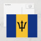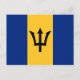 The national flag of Barbados was officially adopted on 30 November 1966, the island's first Independence Day. It consists of a triband of two bands of ultramarine, which are said to stand for the ocean; separated by a golden middle band, representing the sand on the island. A black trident-head (commonly called the "broken trident"), is centred within the golden band. The trident symbol was taken from Barbados' colonial badge, where the trident is shown with Britannia holding it. The broken lower part symbolises a symbolic break from its status as a colony. The three points of the trident represent the three principles of democracy - 1) government of, 2) for, and 3) by the people.