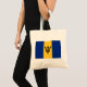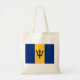 The national flag of Barbados was officially adopted on 30 November 1966, the island's first Independence Day. It consists of a triband of two bands of ultramarine, which are said to stand for the ocean; separated by a golden middle band, representing the sand on the island. A black trident-head (commonly called the "broken trident"), is centred within the golden band. The trident symbol was taken from Barbados' colonial badge, where the trident is shown with Britannia holding it. The broken lower part symbolises a symbolic break from its status as a colony. The three points of the trident represent the three principles of democracy - 1) government of, 2) for, and 3) by the people.