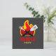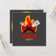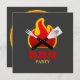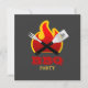 Customisable party invitation for BBQ / barbecue party, grill, picnic or backyard party and gatherings with fun logo on bright colours featuring crossed grill tools above red flames.