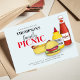 This design features a barbeque, BBQ, barbecue, or family reunion invitation, with a modern, summer, casual, picnic theme, perfect for fun outdoor parties and get-togethers, with whimsical hamburgers, hotdogs, ketchup, and mustard.