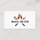 Barbeque themed business cards designed with a utensils and flame graphic and text you can personalise with your restaurant name featured on the front. Just replace our text with your for a customised design you can personalise online.