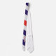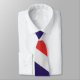 This tie is decorated with diagonal red, white, and blue, stripes and a Barber Pole.