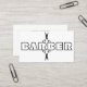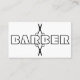 Promote your barbershop with this business card featuring trendy black and white modern bold geometric typography script with scissors. +++++++++ Easy to personalise on the backside with your name, title and contact details. ++++++++ Suitable for men salon, self employed barbers, professional barber stylists.