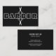 Promote your barbershop with this business card featuring trendy white and black modern bold geometric typography script with scissors. +++++++++ Easy to personalise on the backside with your name, title and contact details. ++++++++ Suitable for men salon, self employed barbers, professional barber stylists.