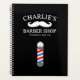 Old school Barber shop appointment planner with moustache logo. Classic red and blue stripe barber pole drawing for men's hair salon. Stylish company design for salon owner, hair stylist employees, coworkers etc. Make your own trendy barbershop gifts.