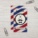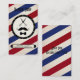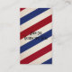 Barber shop Business card with moustache and bow tie graphic. Card has a traditional red/white/blue colouring to it. Fully customisable, add your company information, change the background, or logo. Perfect for a barber, barbershop, or stylist.