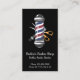 A custom design of a barber shop pole with a razor and a pair of scissors. This business card can be used by a barber or barber shop. Easy to edit. Background is black.