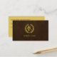 Luxury business template appointment card for a barber shop in faux gold on leather look dark brown background. Please note that the leather look and gold effect are printed. You can change the background colour on the back side and the text fonts and colours after pushing CUSTOMIZE button. You may also replace the logo on the front.