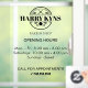 Barbershop opening hours, phone call for appointments widow decal clings with a generic predefined logo (you can replace it with your own)