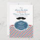 A play on words invitation to a baby boy, baby shower featuring red, white and blue stripes and a moustache. <a href="http://www.freepik.com/free-vector/barber-shop-background-design_973407.htm">Designed by Freepik</a>. (<a href='http://www.freepik.com/free-vector/moustaches-collection_799810.htm'>Designed by Freepik</a>). <br/><br/>The card is easy to customise with your wording, font, font colour, paper shape options and choice of six paper types.<br/><br/>Not exactly what you're looking for? All our products can be custom designed to meet your needs at no extra charge.<br/><br/>Simply contact us at askcottonlamb@gmail.com.<br/><br/>Coordinating products available: Just ask us!