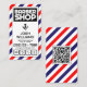 Vertical style with barber tools and logo template. With QR code that could link customers to services and price list. Unique retro culture urban style for barber shop and hair salon owners.