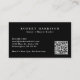Simple masculine black business card for barbers and barbershops that features modern minimal white typography and an abstract illustration of a white bowtie and scissors forming the lapels of a jacket. On the back, add your website URL address to create a scannable QR code for your clients to scan for more information.