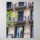 Photo of a building in Barcelona Spain with iron balconies, shuttered windows, decorated with Roman costumed women in Art Nouveau style.