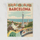 Park Güell and mosaic rooftops overlooking the sea in bold Mediterranean tones.
