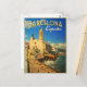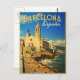 A wonderful seaside image of Barcelona Spain with a 60s retro look and the words Barcelona España.