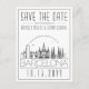 A unique wedding save-the-date postcard for a marriage taking place in the beautiful city of Barcelona, Spain. This invitation features a stylised illustration of the city's unique skyline with its name underneath. This is followed by your wedding day information in a matching open-lined style. On the reverse side of the post is your address information. All individual elements of the invite card are unlocked so feel free to change any details necessary such as font sizes, styles, and more by using the customisation function.