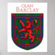 Barclay Scottish tartan plaid pattern design for the Barclay Clan Family underneath the red Lion Rampant Shield of Scotland.