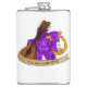 The flask itself is fine. It’s a cheap flask, obviously bought in bulk, however am prepared to overlook that. Given that it is a personalized item, I would have liked to have seen gift boxing instead of the generic packaging. Terrible printing, and/or quality. It’s a cheap, tacky vinyl. It is not cut straight and is also applied in a way that it is overhanging the bottom, causing the glue to catch on items and it will eventually roll and tear, damaging the wrap.