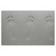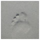 A photograph of one footprint is tiled to make it look like a left and right footprint repeating across the fabric. The original footprint was left on a California ocean beach by someone walking along the wet sand. The footprints should be life size. The pattern is subtle with the overall colour being grey. It could be used to add a relaxed feel to your home decor or to create a unique item of clothing.