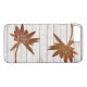 iPhone case, barely there, with a design of golden water lilies on a light faux wooden background. Thanks to Design Cuts for the background on the case.