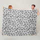 Barkcloth Style Pattern - Black on White Fleece Blanket