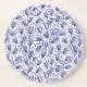 Barkcloth Style Pattern - Dark Blue on White Coaster