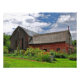 This photo print features fine art photography of a rustic red barn which dominates the lovely summer landscape. Weathered barn board adds to the charm of this old building. A cheerful flower garden with sunflowers and red zinnias decorates the green, grassy lawn and invites the viewer to dream of a simpler time. Blue sky with fluffy white clouds complete the picture.