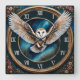 Barn Owl and Roses Fantasy Art Square Wall Clock
